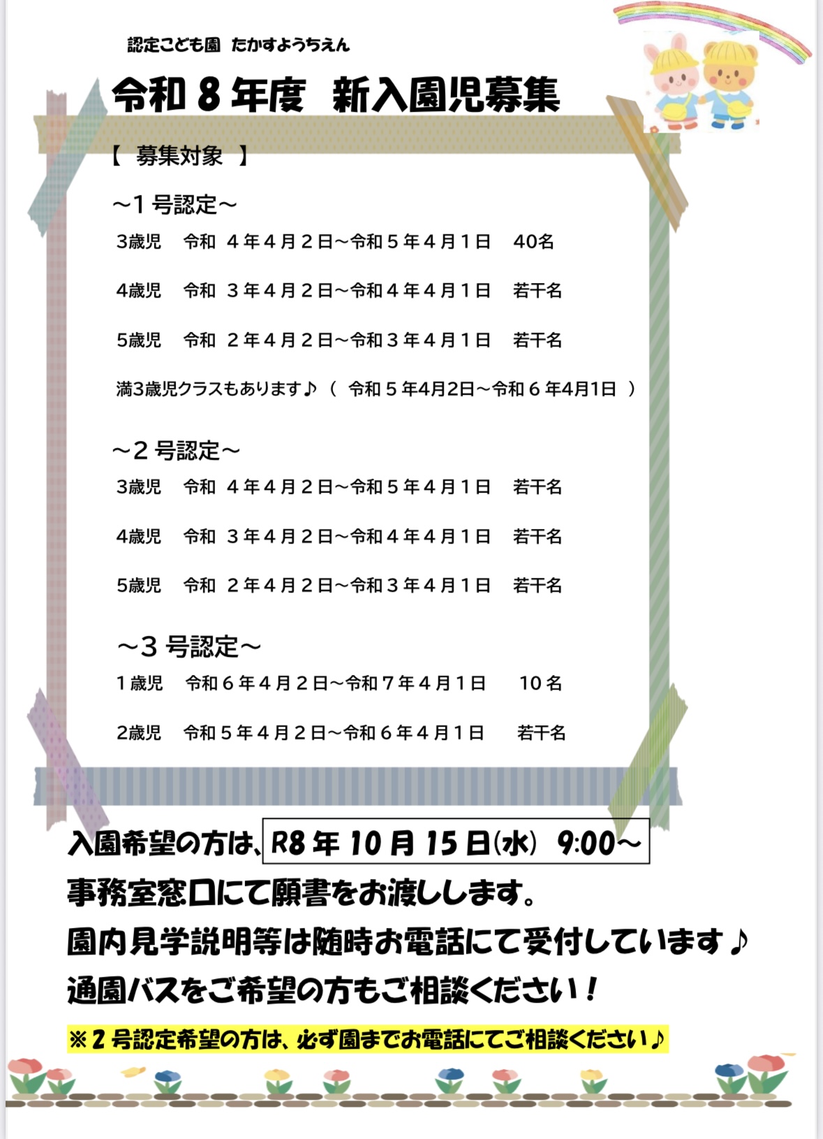 3歳児 (令和2年4月2日生〜令和3年4月1日生) 若干名